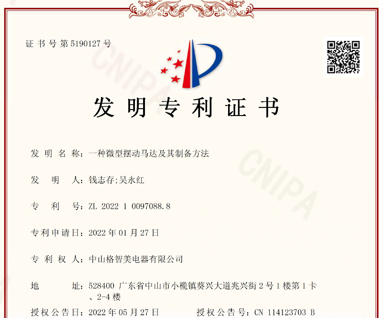 本發(fā)明申請人中山格智美電器有限公司,成立于2014年01月09日,位于小家電之鄉(xiāng)廣東省中山市小欖鎮(zhèn),主營業(yè)務(wù)為研發(fā)、加工、生產(chǎn)、銷售:電器、電機、電子設(shè)備,核心產(chǎn)品為各種微型電機制造。