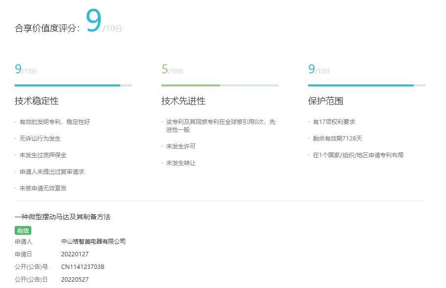 四、合享發(fā)明專利價值度評分9分(最高10分)