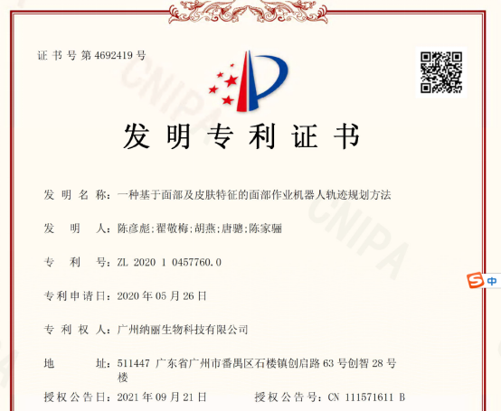 本發(fā)明專利作為高質(zhì)量的發(fā)明專利,與申請(qǐng)人布局的其他發(fā)明專利相互配合,對(duì)醫(yī)療美容機(jī)器人相關(guān)的計(jì)算機(jī)數(shù)據(jù)采集、核心算法、美容機(jī)器人控制等進(jìn)行了合理的保護(hù),采用快速的申請(qǐng)和審查答復(fù),大幅縮短了審查時(shí)間。本發(fā)明專利獲得授權(quán)后,有利于該申請(qǐng)人對(duì)該專利技術(shù)成果進(jìn)行轉(zhuǎn)化、實(shí)施,盡早投入使用,產(chǎn)生更好的社會(huì)和經(jīng)濟(jì)效益。