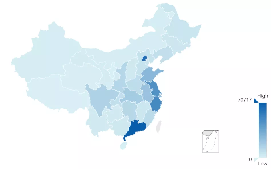 以授權(quán)公告日統(tǒng)計2020年1月1日至12月31日,中華人民共和國國家知識產(chǎn)權(quán)局公告的發(fā)明專利授權(quán)數(shù)量(不含港澳臺)達530286件。從中國省市分布來看,廣東省發(fā)明授權(quán)專利量占比最高(13.34%),其次為北京(11.93%)和浙江(9.41%)。