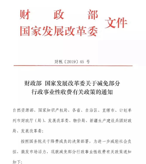 近日,財政部、國家發(fā)改委發(fā)布《關于減免部分行政事業(yè)性收費有關政策的通知》,《通知》規(guī)定減繳項目自2019年7月1日起執(zhí)行。