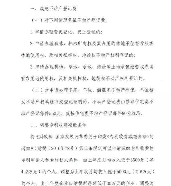 將《財政部國家發(fā)展改革委關于印發(fā)〈專利收費減繳辦法〉的通知》(財稅〔2016〕78號)第三條規(guī)定可以申請減繳專利收費的專利申請人和專利權人條件,由上年度月均收入低于3500元(年4.2萬元)的個人,調整為上年度月均收入低于5000元(年6萬元)的個人;由上年度企業(yè)應納稅所得額低于30萬元的企業(yè),調整為上年度企業(yè)應納稅所得額低于100萬元的企業(yè)。