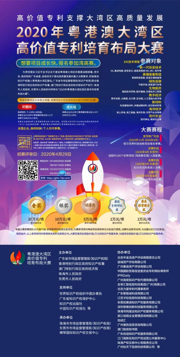 為推進(jìn)粵港澳大灣區(qū)高質(zhì)量發(fā)展,充分發(fā)揮知識(shí)產(chǎn)權(quán)對(duì)大灣區(qū)建設(shè)發(fā)展的支撐作用,由國(guó)家知識(shí)產(chǎn)權(quán)局指導(dǎo),廣東省市場(chǎng)監(jiān)督管理局(知識(shí)產(chǎn)權(quán)局)、香港特別行政區(qū)政府知識(shí)產(chǎn)權(quán)署、澳門(mén)特別行政區(qū)政府經(jīng)濟(jì)局、珠海市人民政府共同主辦的首屆灣高賽在珠海成功舉辦。